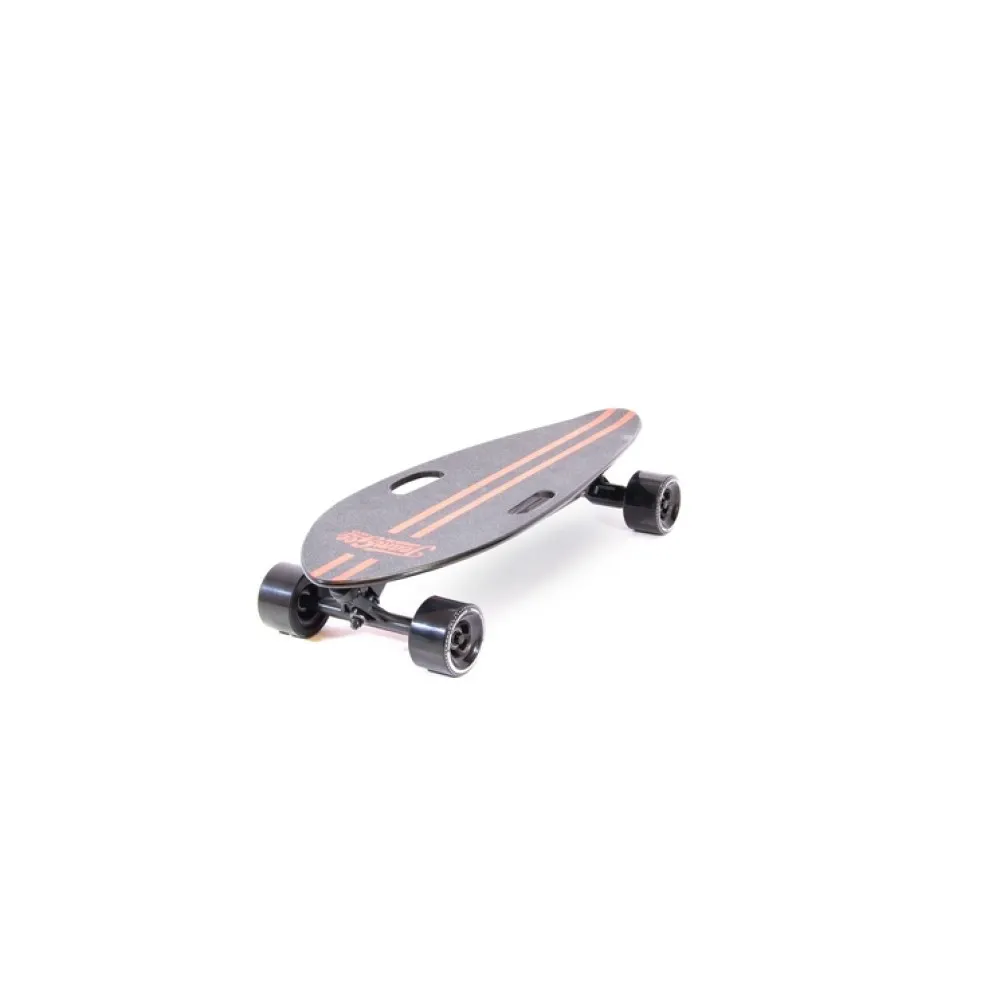 Рама изделия изготовлена из практически вечного карбона, срок службы которого длительный. Вес изделия составляет 3,6 кг. При этом грузоподъемность в 90 кг позволяет пользоваться изделием как подросткам, так и взрослым. Эстетически электроскейт выглядит модно и современно. Управляется с помощью специального приложения. Характеристики изделия требуют покупки дополнительных аксессуаров защиты для ездока. Помните, при определенном уровне профессионализма электроскейт способен разогнаться до максимальных скоростей.