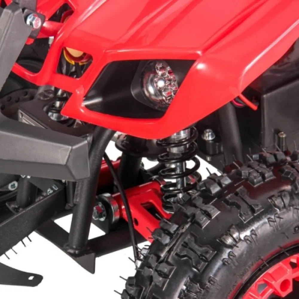 Электроквадроцикл устойчивый на ровной поверхности. Дает возможность максимального разгона, начального понимания скорости и участии в дорожном движении наравне с остальными райдерами. При мощностных параметрах электродвижка 1000 Вт максимальная скорость разгона достигает 25 км/час. Электроквадроцикл оснащен большой светодиодной фарой, разрешающей езду и развлечение подрастающего водителя в вечернее время и проблематичную погоду.