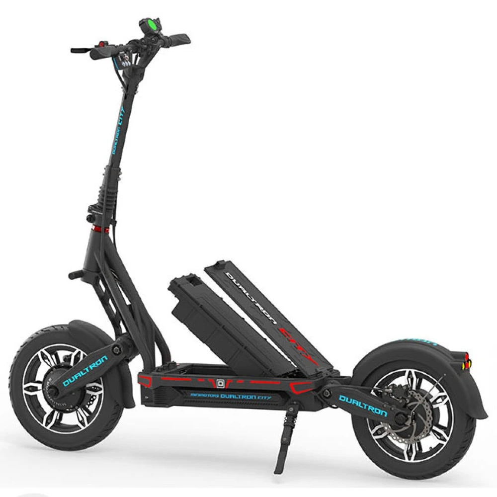 Новейший Электросамокат Dualtron City 2021 года от бренда Minimotors подойдёт любителям поездок на длинные дистанции. Батарея: 25 Ач, 60 В, производства известной фирмы LG. За счет улучшения батареи увеличился запас по пробегу, на одном заряде самокат может проехать до 120 км. Вес 41 кг, выдерживает максимальный вес водителя до 150 кг. За счёт Мощности мотор-колеса в 4000 W Максимальная скорость самоката достигает до 80 км/ч, что делает его на рынке одним из самых быстрых электросамокатов в мире.