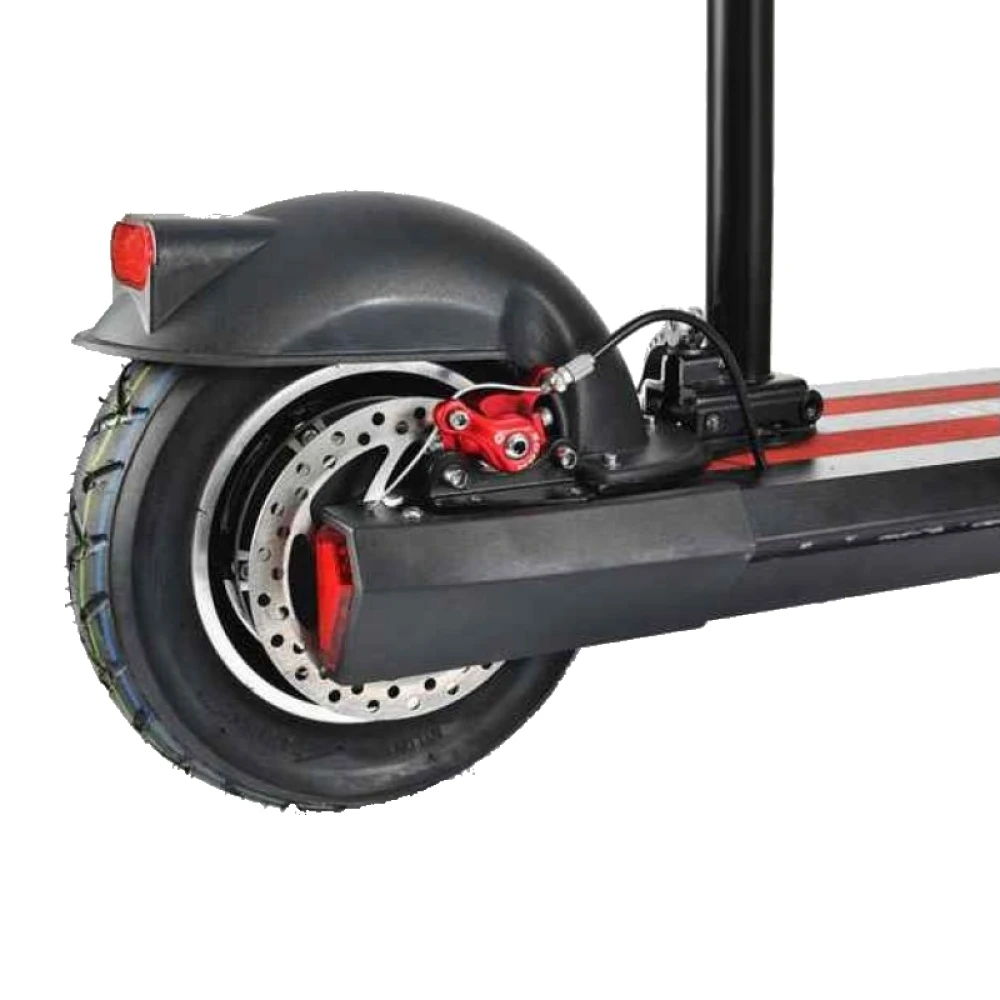 Мощный двигатель 450 Вт позволяет развивать электросамокату MMK 10 максимальную скорость 35 км/ч, улучшенные амортизаторы на переднем и заднем колесах сглаживают неровности дорожного покрытия. Тормозная система на два колеса помогает контролировать движение. Колеса диаметром 10 дюймов, на заднем массивное крыло защищающее от попадания грязи. При торможении сзади загорается стоп-сигнал, а спереди установлена светодиодная фара, вас будет хорошо видно в сумерках.