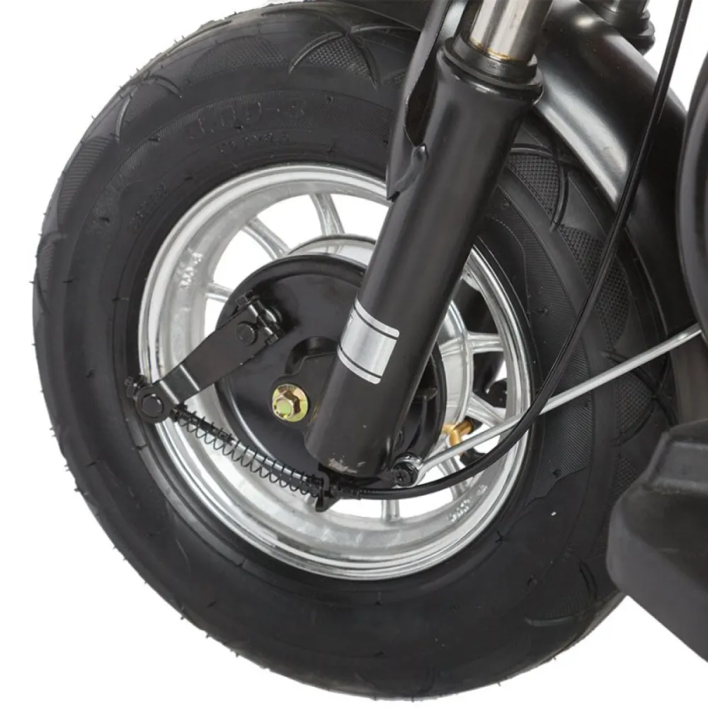 • Тормозная система: Передний барабанный и задний ножной тормоза гарантируют надежное и своевременное торможение, повышая безопасность при резких остановках.