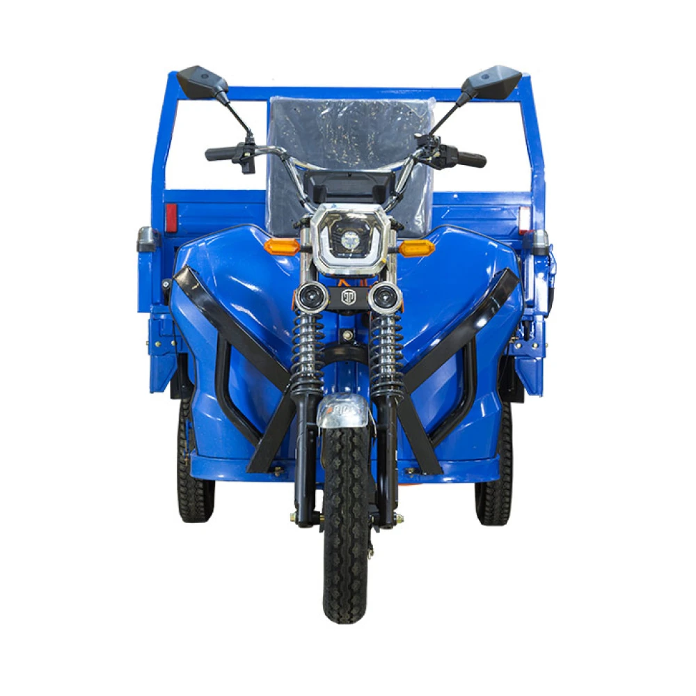 Этот электротрицикл оснащен гидравлическим приводом, что обеспечивает плавное и стабильное управление. Передняя подвеска состоит из усиленных гидравлических амортизаторов, которые обеспечивают комфортную езду даже на неровных поверхностях.