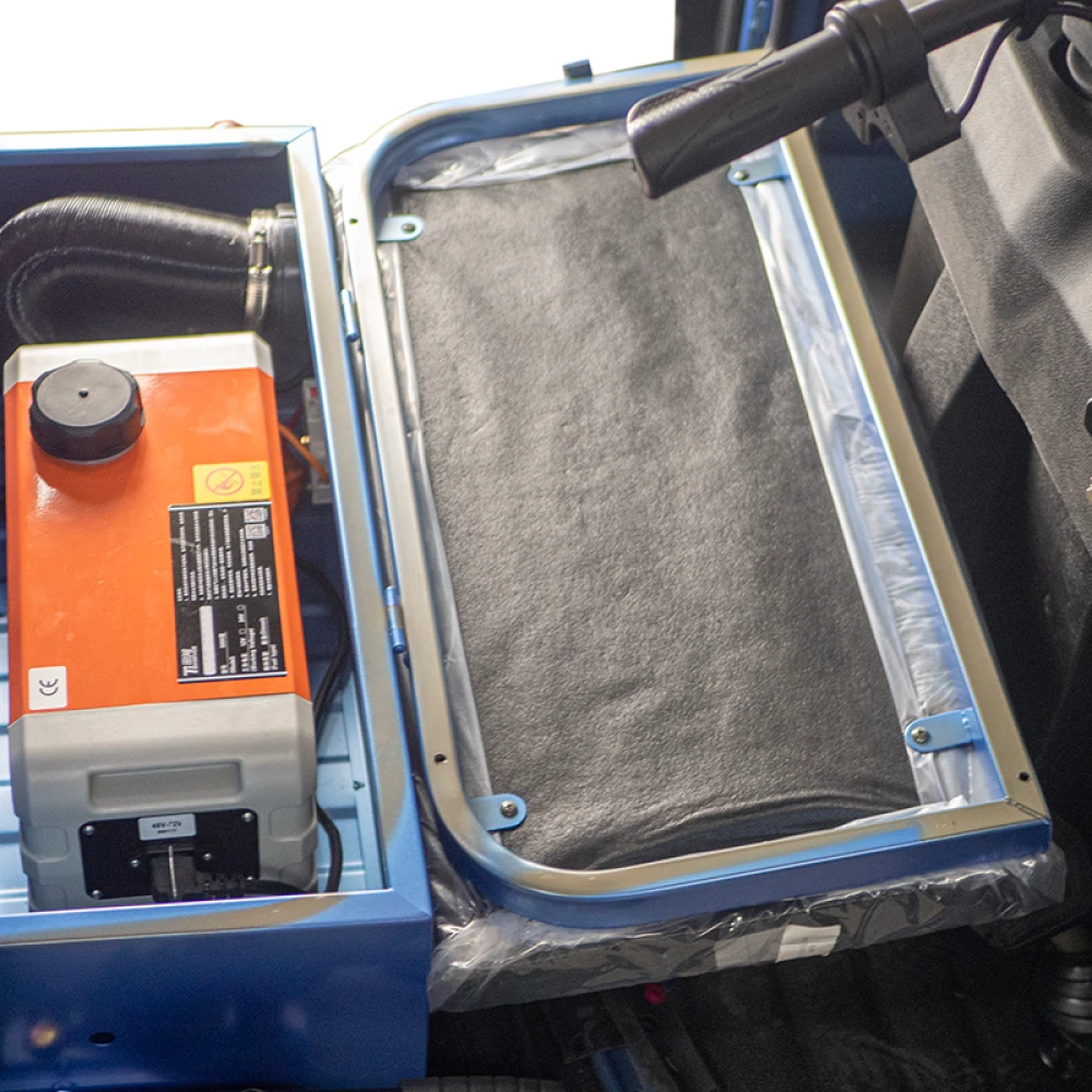 С его компактными размерами (длина 290 см, ширина 126 см, высота 170 см) и пробегом до 40 км на одной зарядке, Rutrike КАРГО — идеальное решение для малого бизнеса и городских служб доставки. Комфорт и безопасность водителя обеспечиваются дизельным обогревателем кабины и внутренним теплым обдувом ветрового стекла. Камера заднего вида с цветным дисплеем и мультимедийная система с Bluetooth, радио и USB-соединением делают каждую поездку удобной и приятной.