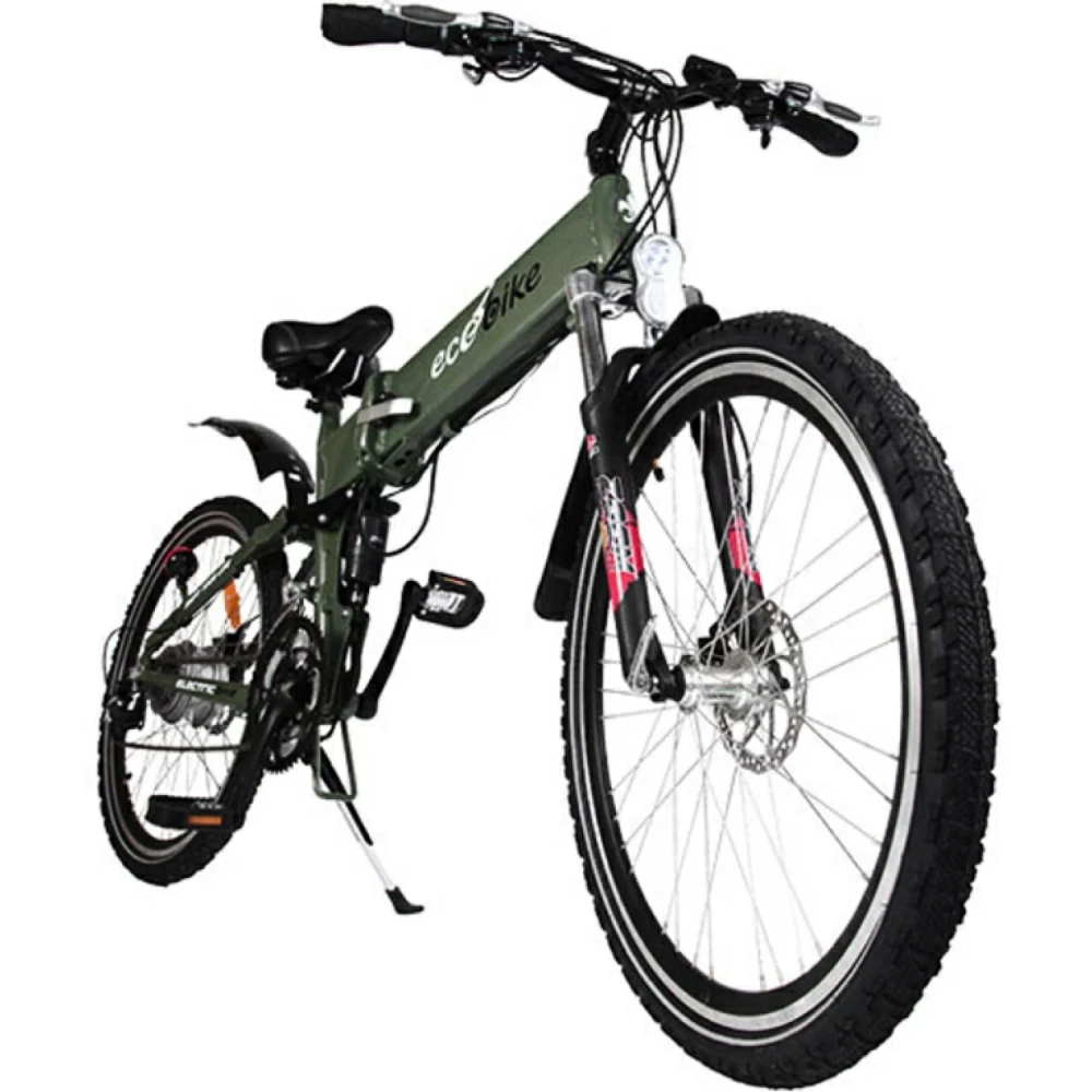 Электровелосипед ECOBIKE Hummer, зеленого цвета - складной двухподвес рассчитан на быструю езду 35 км/час по любому типу дорожного полотна и рельефа. Рама выполнена из облегченного алюминия и свободно выдерживает нагрузку до 120 кг. Мощный дизайн и смелое стильное оформление придется по душе настоящим технарям и любителям острых ощущений и драйва. Райдер свободно преодолеет до 35 км пути на одном заряде (за 5 часов), в дальнейшем можно воспользоваться режимом педалирования. Педали складного типа вращаются легко и без дискомфорта. Наш интернет-магазин предлагает регулярные скидки постоянным покупателям и накопительную карту клиента.