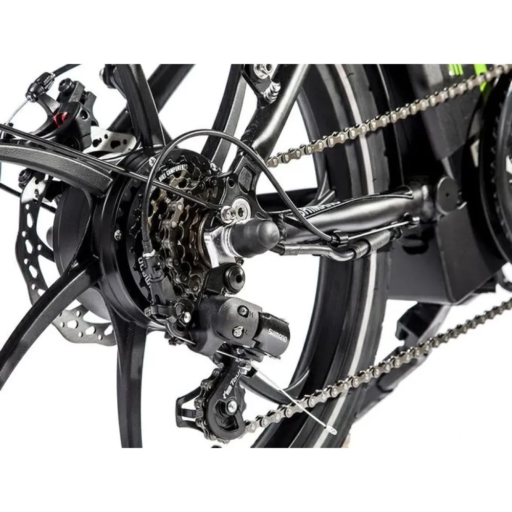 Накатистые устойчивые 20–дюймовые колеса в сочетании с емкой батареей обещают активное и безопасное времяпрепровождение. Передние и задние амортизаторы сглаживают движение по кочкам, делают его плавным. Батарея размещена за седлом. Надежно защищена от воздействия негативных факторов. 6-скоростной режим регулируется с помощью рычага. Мягкое компактное седло регулируется по высоте, удобно при длительной езде. Бортовой компьютер позволяет отслеживать скоростные параметры, степень заряда батареи и другие характеристики.