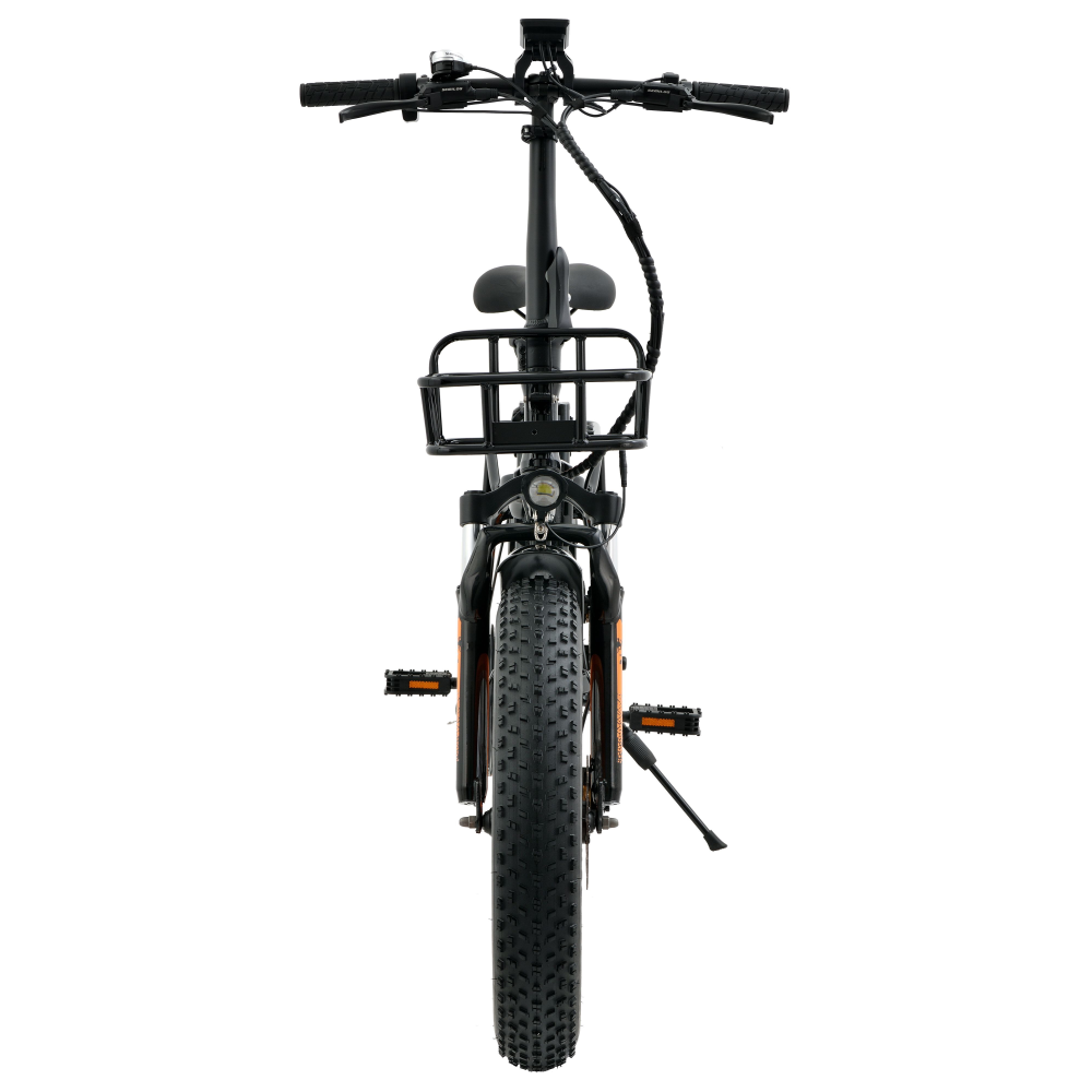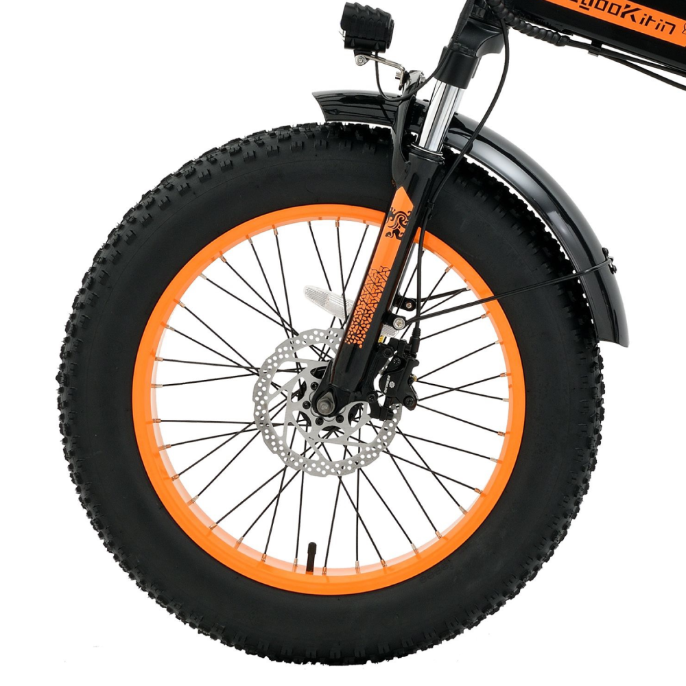 Основной цвет велосипеда черный, его диски и надписи оформлены в ярком оранжевом цвете. Это делает его уникальным среди других моделей электротранспорта. Удобное сиденье и рулевая стойка обеспечивают комфортную езду, а настройки вашего устройства позволяют управлять скоростью и другими функциями велосипеда с максимальной точностью.