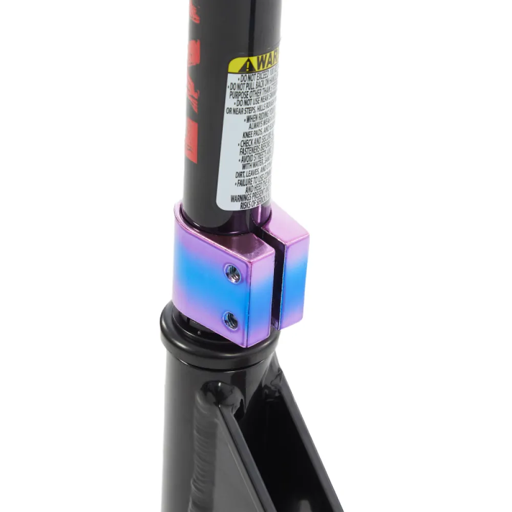 Рулевая стойка конструкции – стальная с фирменными ребрами жесткости. Колесная часть размером – 100 мм – полиуретановая, с подшипниками ABEC 7, обещает качественные прыжки и исполнение других трюков. Прорезиненные удлиненные грипсы – износостойкие, рассчитаны на жесткую эксплуатацию, не вызывают запотевания рук и других неудобств. Нескользящая дека исключает скольжение стоп, что важно при выполнении прыжков.