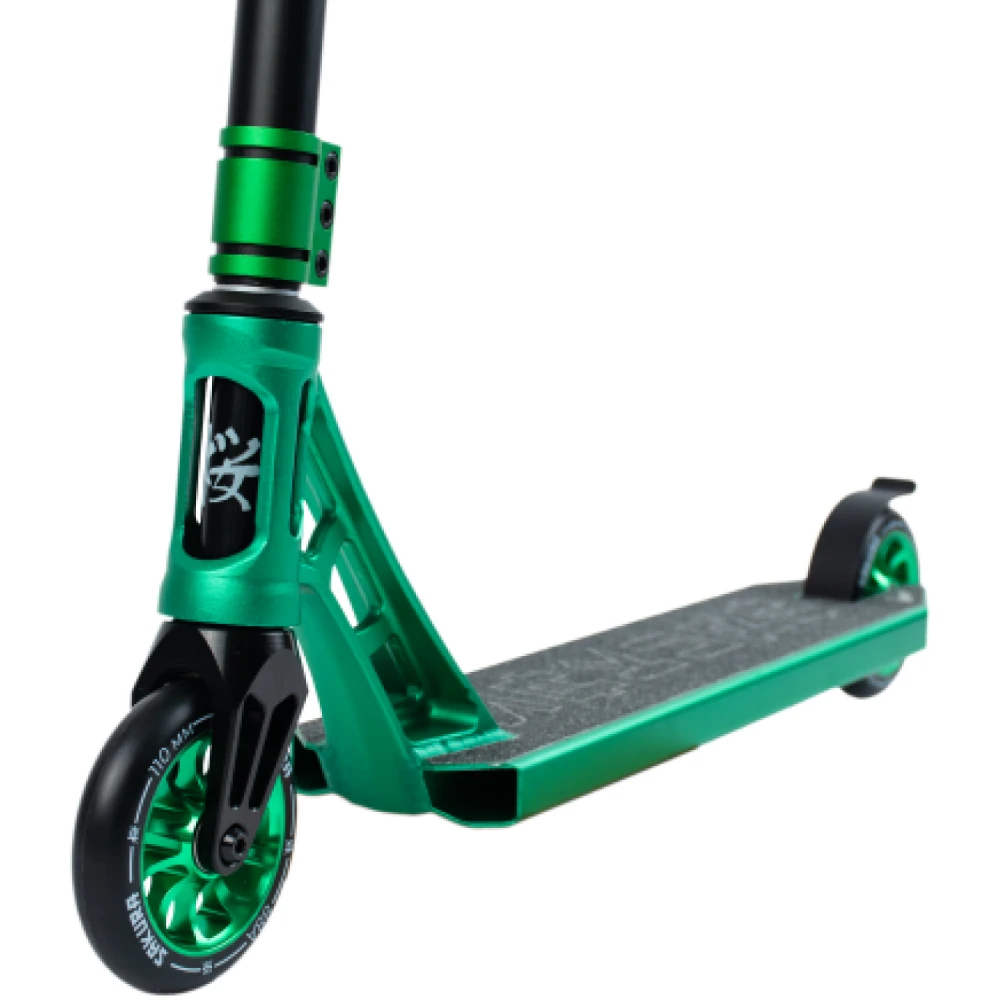 Трюковой самокат Haevner Sakura NeoChrome Green изготовлен в сдержанном японском дизайне. Покорил пользователей высоким качеством технической части, прочностью и долговечностью материала изготовления.
